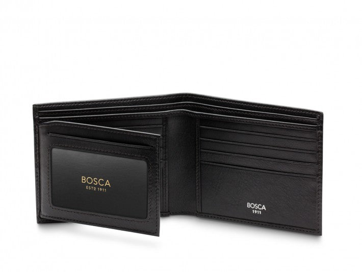 This supremely functional silhouette features eight perfectly aligned horizontal card pockets with 2 vertical “hidden” ones. But wait, there’s more…three additional card pockets and an ID window “flip out” from the left for additional capacity. This handsome stunner holds it all.